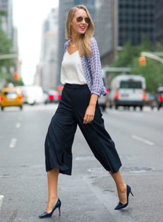 Wenn es heiss ist, sind etwas lockere Kleidungsstücke viel besser um cool zu bleiben. Die heisse Luft kann ungehindert durchlüften. Ausserdem sieht man die Schweiss Achseln nicht direkt. Es muss dafür nicht Over Size und unförmig sein; nur etwas mehr Spielraum als sonst. Auch ein Boxiges Shirt kann nämlich elegant sein. Anstatt dem 2 Piece Suit, nur die Hose. Statt einem Bleistiftrock eher einen A-Schnitt. Enge Hosen gegen weite Varianten austauschen oder die kürzeren Culottes nehmen. Am besten sind hier fliessende Stoffe, so kann man beide Längen mit wenigen Handgriffen super stylish und elegant tragen.